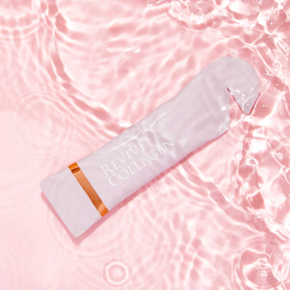 Revive Collagen products formulation contains hydrolyzed collagen peptides for better absorption, with added vitamin C and biotin to further support collagen synthesis and skin health.